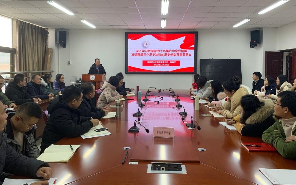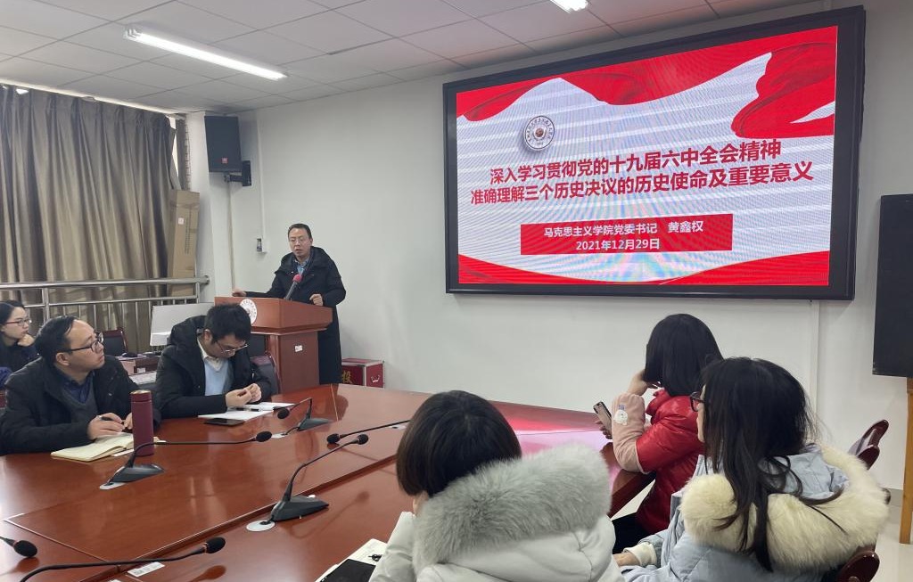 为深入学习贯彻党的十九届六中全会精神,12月29日下午,我们在善思楼(南)712会议室开展党的十九届六中全会精神专题宣讲,宣讲由学院党委书记黄鑫权主讲,学院全体教职工党员参加。