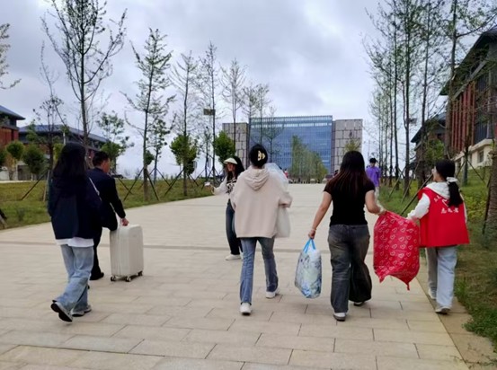 在学院党委副书记兼纪委书记王万江、分团委副书记兼辅导员马景瑶、班主任刘雪冬等老师的带领协调下,党员志愿者与学院学生会成员密切配合,高效有序地推进各项迎新任务。学校一号门、二号门和四号门均设有志愿者引导点,为新生提供路线指引和报到协助;A7宿舍楼下设置的学院报到点,集中办理入学手续,确保流程顺畅。此外,学院还派出班主任杨璨玉、陈娅娅带领学生志愿者,前往贵阳客车东站(龙洞堡)开展校外迎新接站工作,实现从车站到校园的“一站式”暖心服务。