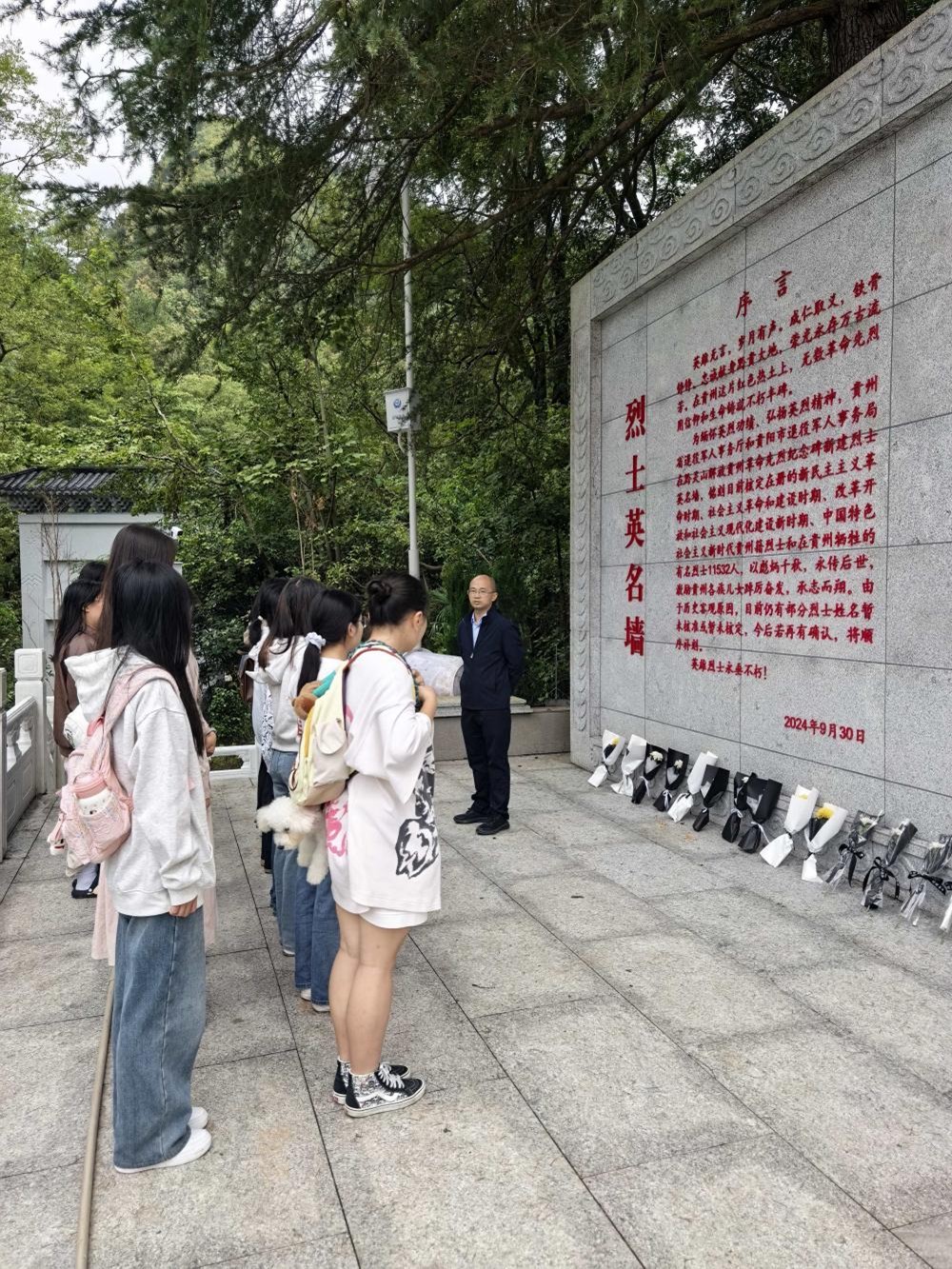 9月27日,永利集团304官网学生党支部赴黔灵山贵州革命先烈纪念碑开展以“缅怀先烈,勿忘历史”为主题的祭扫活动。上午10时30分,活动在庄严肃穆的氛围中正式开始。全体成员身着素装,整齐列队于烈士纪念碑前。