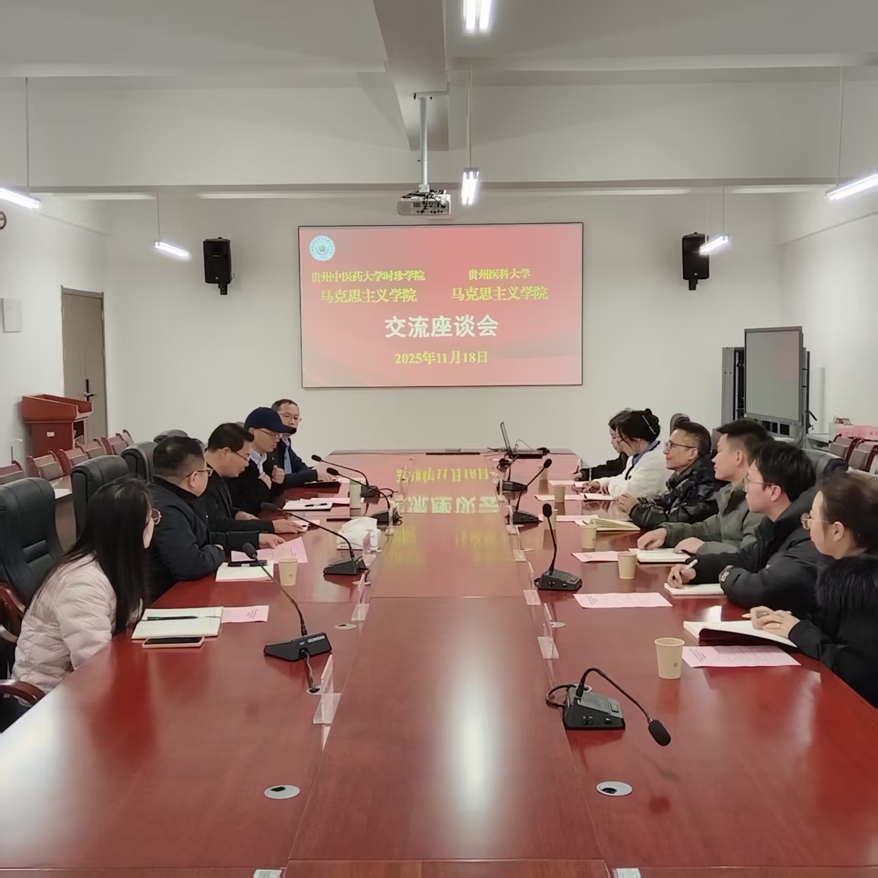 交流环节,双方围绕思想政治理论课教学改革、科研能力提升、学生思想政治工作等议题进行了深入交流与探讨,分享了各自的经验与做法,就科研申报、教研活动及青年教师提升等展开深入交流。