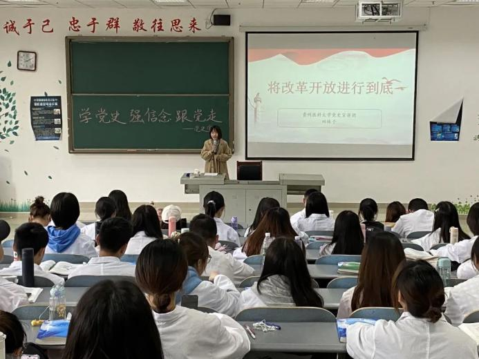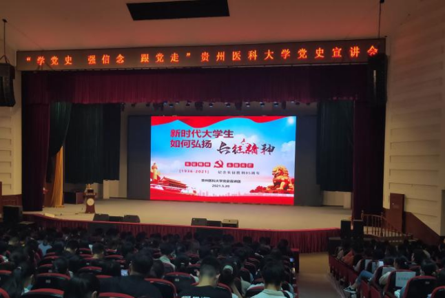 习近平总书记在考察清华大学时指出,广大青年要爱国爱民,从党史学习中激发信仰、获得启发、汲取力量。共青团304永利登录入口委员会党史宣讲团由5名具有一定理论背景及宣讲功底的思想政治辅导员与青马工程培育的15名优秀学生干部组建而成,紧紧围绕习近平新时代中国特色社会主义思想,通过多种形式把讲理论、讲政策、讲故事、讲精神结合起来,着力推进党史宣传工作往深里走、往实里走、往心里走,切实打通党史学习教育“最后一公里”,引导广大青年在重温党的光辉历程中,追悟党的初心使命,坚定理想信念,为实现中华民族伟大复兴中国梦贡献青春力量。一场场宣讲犹如一粒粒“红色种子”,撒播在贵医校园每个角落,在每一位青年学子心中生根发芽。